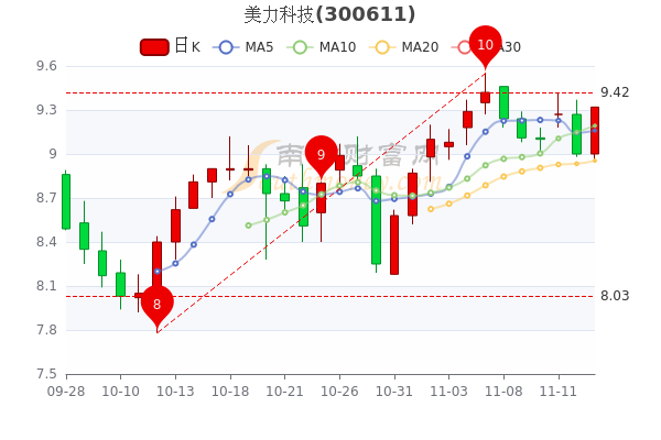 11月15日晚间复盘消息,美力科技最新报价9.320元,涨2.89%,3日内股价上涨0.54%;今年来涨幅下跌-23.61%,市盈率为71.69。