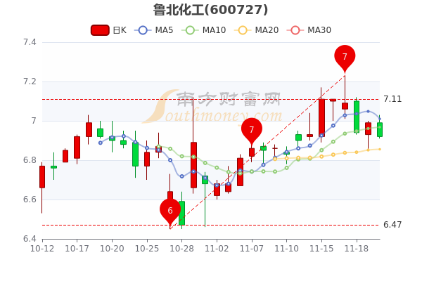 11月22日晚间复盘消息,鲁北化工最新报6.920元,成交量375.86万手,总市值为36.58亿元。