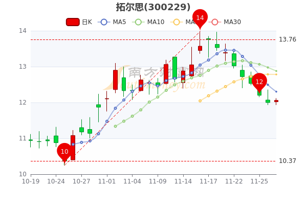 11月29日盘中消息,拓尔思截至10时35分,该股报12.020元,涨0.42%,7日内股价下跌12.75%,总市值为85.92亿元。