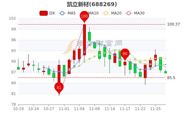 11月29日讯息,凯立新材3日内股价下跌3.12%,市值为114.1亿元,跌0.99%,最新报87.300元。