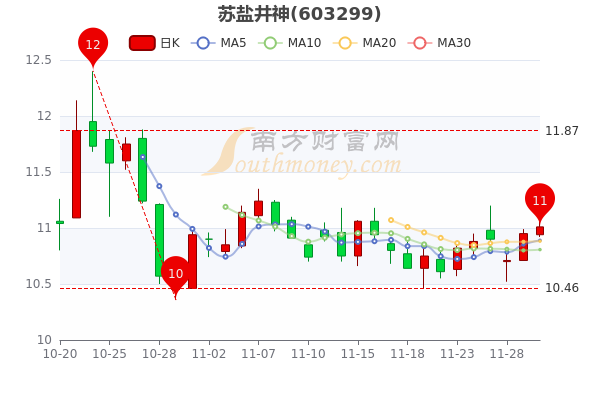 苏盐井神开盘价报10.94元,现涨0.64%,总市值为86.07亿元;截止发稿,成交额2088.82万元。
