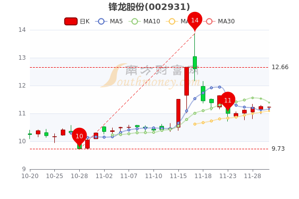 11月30日消息,锋龙股份开盘报11.22元,截至10时54分,该股跌0.18%,报11.140元。换手率0.36%,振幅跌0.98%。