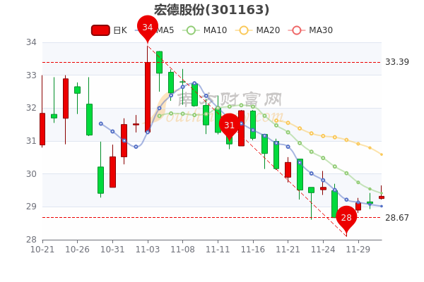 12月1日收盘消息,宏德股份最新报29.320元,成交量83.55万手,总市值为23.93亿元。