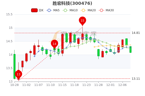 12月8日尾盘最新消息,胜宏科技7日内股价上涨1.53% 。