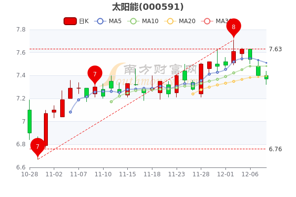 12月8日消息,太阳能3日内股价下跌3.11%,最新报7.350元,跌0.41%,成交额1.97亿元。