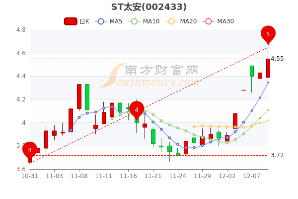 ST太安12月9日收报4.550元,涨2.71,换手率6.75%。