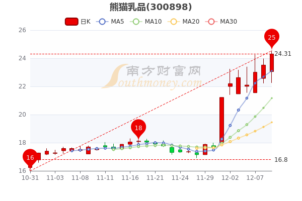 12月9日收盘消息,熊猫乳品今年来涨幅下跌-39.33%,最新报24.310元,成交额3.44亿元。