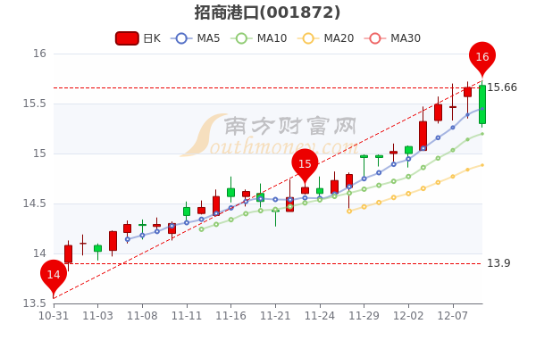 12月9日,招商港口开盘报价15.68元,收盘于15.300元,跌2.3%。当日最高价为15.73元,最低达15.26元,成交量270.71万手,总市值为382.36亿元。