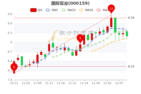 12月9日消息,国际实业截至下午3点收盘,该股跌0.97%,报9.200元;5日内股价下跌6.3%,市值为44.22亿元。