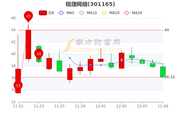 锐捷网络(301165)12月9日开报37.88元,截至下午三点收盘,该股报36.140元跌4.54%,全日成交3.26亿元,换手率达15.31%。