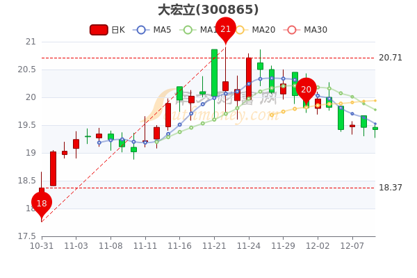 12月9日收盘消息,大宏立最新报19.420元,成交量32.17万手,总市值为18.58亿元。