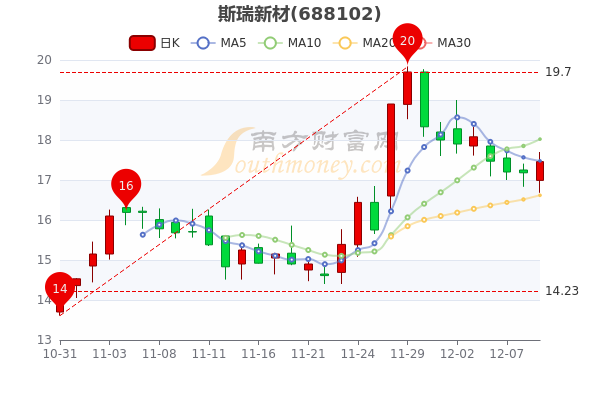 12月9日斯瑞新材(688102)开盘报16.99元,截至下午三点收盘,该股报17.460元涨1.63%,成交8442.05万元,换手率13.9%。