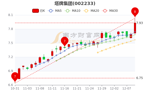 12月9日消息,塔牌集团5日内股价上涨2.4%,最新报7.930元,成交量2442.68万手,总市值为94.55亿元。