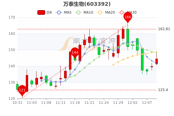 12月9日消息,万泰生物开盘报价141.3元,收盘于144.480元。3日内股价上涨5.29%,总市值为1309.09亿元。