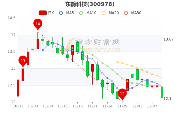 12月9日收盘消息,东箭科技收盘于12.120元,跌3.04%。今年来涨幅下跌-51.49%,总市值为51.23亿元。