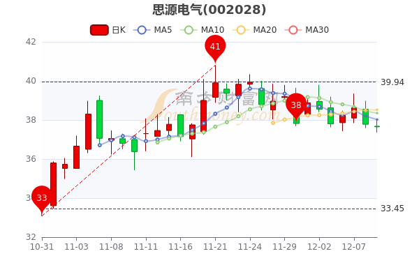 12月9日消息,思源电气开盘报37.68元,截至下午3点收盘,该股跌0.34%,报37.650元。换手率0.61%,振幅跌0.34%。