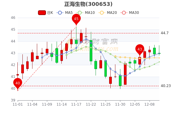 12月12日讯息,正海生物3日内股价下跌0.75%,市值为77.31亿元,涨0.07%,最新报42.950元。