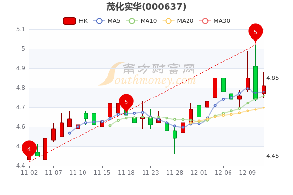 12月13日消息,茂化实华5日内股价上涨1.46%,该股最新报4.810元涨1.48%,成交3717.29万元,换手率2.09%。