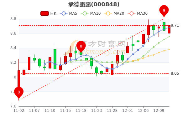 12月13日消息,承德露露截至下午3点收盘,该股涨0.58%,报8.710元,总市值为93.76亿元。