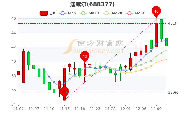 12月13日消息,迪威尔5日内股价下跌0.4%,今年来涨幅上涨55.03%,最新报42.120元,市盈率为247.77。