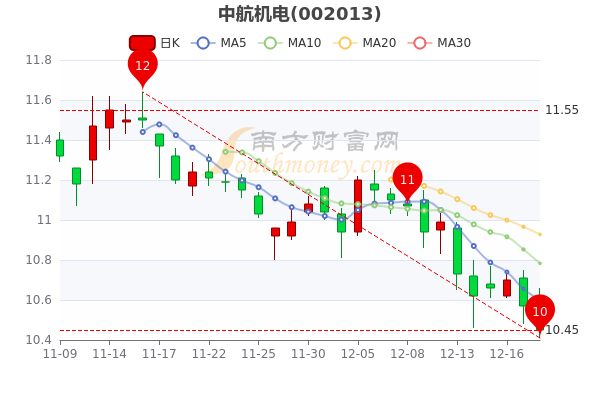 中航机电开盘价报10.54元,现跌1.14%,总市值为404.41亿元;截止发稿,成交额2.11亿元。