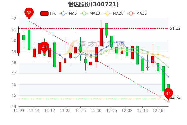 12月20日尾盘消息,怡达股份3日内股价下跌7.1%,最新报44.580元,成交额1711.53万元。