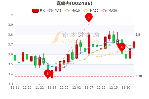 12月22日消息,嘉麟杰5日内股价下跌1.64%,该股最新报3.730元涨1.91%,成交1.67亿元,换手率5.34%。