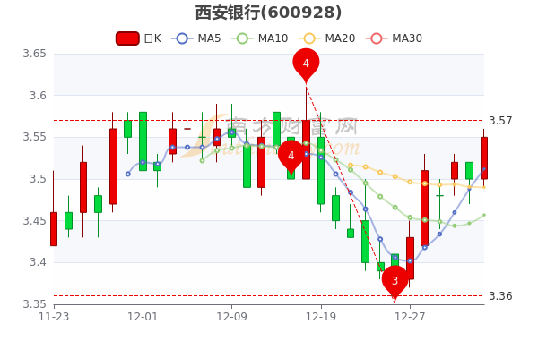 1月4日消息,西安银行7日内股价上涨5.35%,截至15点,该股报3.550元,涨0.29%,总市值为157.78亿元。