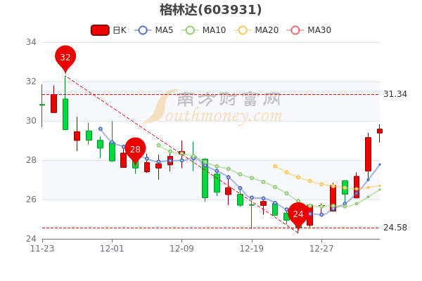 1月4日消息,格林达7日内股价上涨13.05%,最新报29.580元,市盈率为29.88。