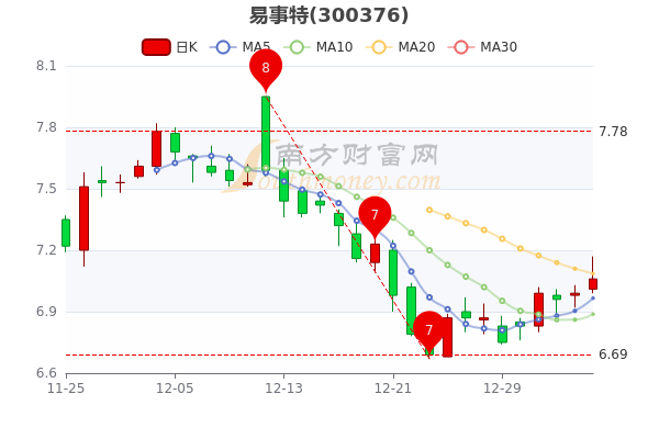 1月6日易事特3日内股价上涨1.42%,截至15时收盘,该股报7.060元涨1%,成交1.35亿元,换手率0.82%。