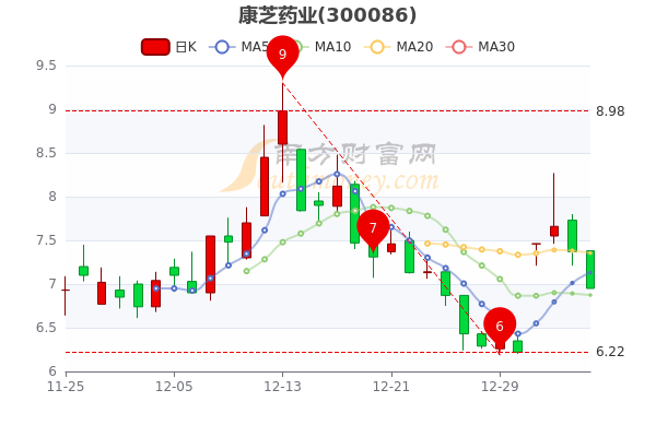 1月6日收盘消息,康芝药业开盘报价7.38元,收盘于6.950元,成交额3.33亿元。