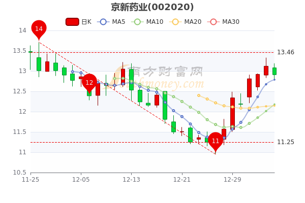 1月6日京新药业3日内股价下跌0.08%,截至15点,该股报12.910元跌1.6%,成交1.33亿元,换手率1.57%。