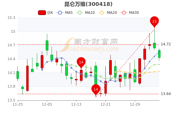 1月6日收盘消息,昆仑万维收盘于14.430元,跌1.43%。今年来涨幅下跌-1.32%,总市值为170.7亿元。