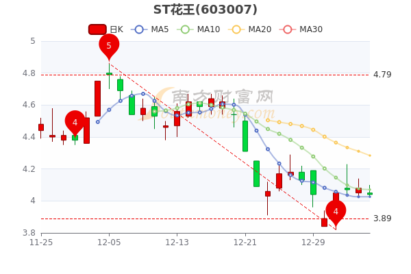 1月6日收盘消息,ST花王开盘报价4.05元,收盘于4.040元。5日内股价上涨3.71%,总市值为13.47亿元。