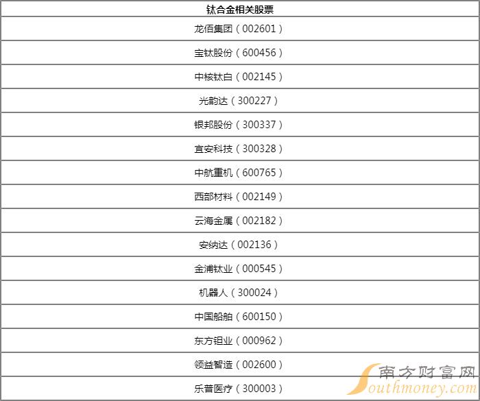 钛合金概念股龙头有哪些?龙佰集团002601属于什么板块?下面跟随小股一起来看看吧!