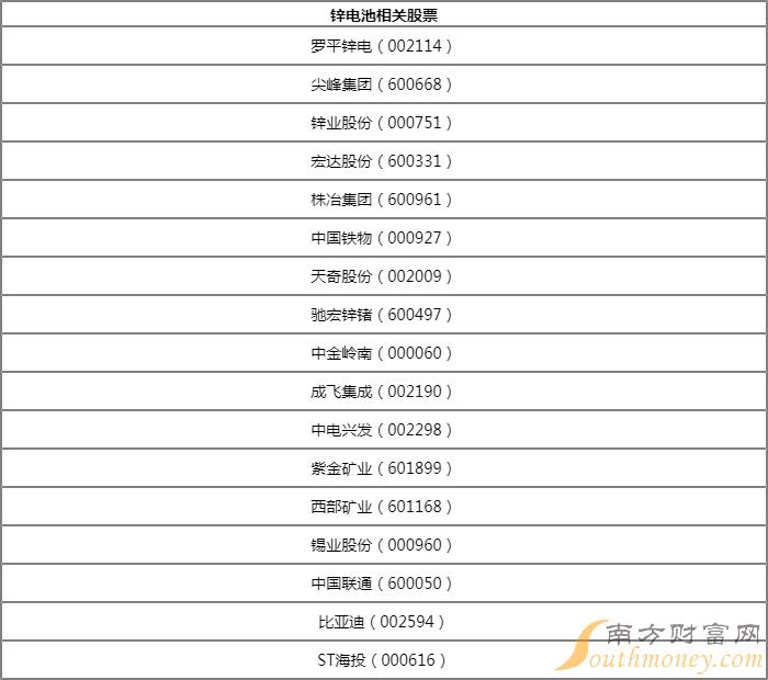 锌电池概念股的龙头股最有可能从以下几个股票中诞生 罗平锌电、 尖峰集团、 锌业股份。