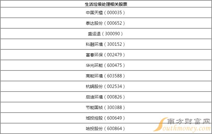 生活垃圾处理概念股的龙头股最有可能是哪几只?