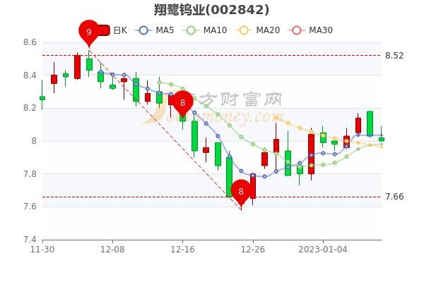 1月11日消息,翔鹭钨业开盘报8.02元,截至10时50分,该股跌0.12%,报8.070元。当前市值22.41亿。