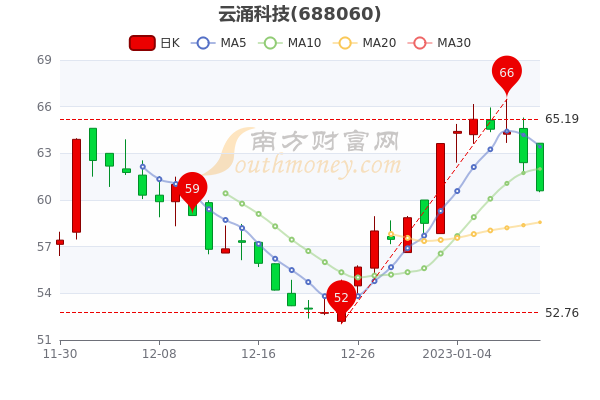 1月11日云涌科技早盘消息,7日内股价上涨6.25%,今年来涨幅下跌-1.97%,最新报62.760元,跌2.9%,市值为37.76亿元。