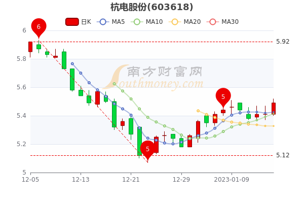 1月16日收盘最新消息,杭电股份昨收5.41元,截至下午三点收盘,该股涨1.48%报5.490元 。