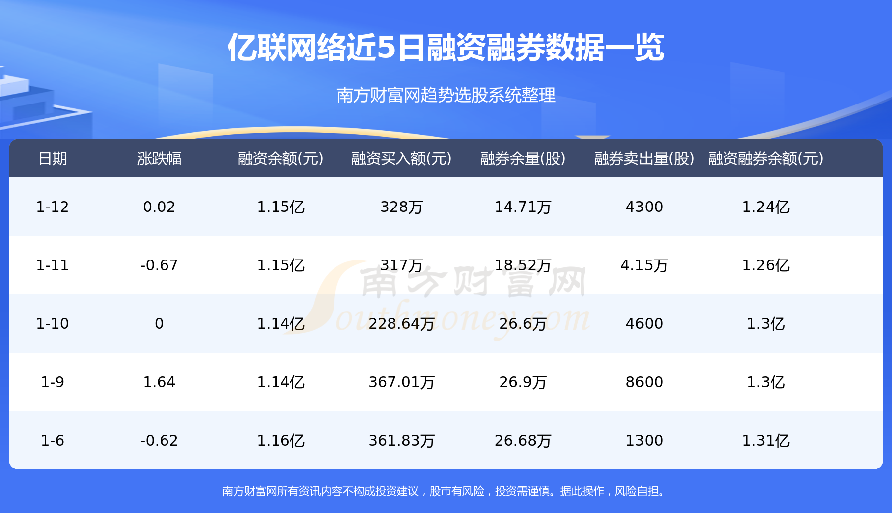 1月12日亿联网络融券信息显示,融资方面,当日融资买入328万元,融资偿还296.06万元,融资净买额31.94万元。融券方面,融券卖出4300股,融券偿还4.24万股,融券余量14.71万股,融券余额876.59万元。融资融券余额1.24亿元。