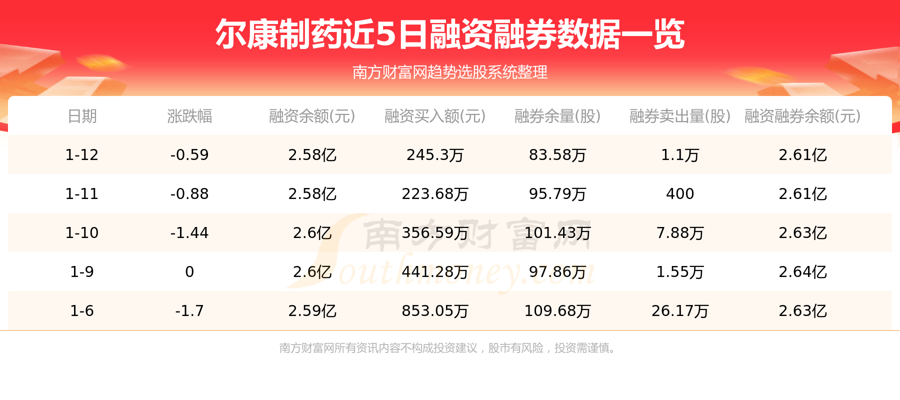 尔康制药1月12日融券信息显示,融资方面,当日融资买入245.3万元,融资偿还198.92万元,融资净买额46.38万元。融券方面,融券卖出1.1万股,融券偿还13.31万股,融券余量83.58万股,融券余额281.66万元。融资融券余额2.61亿元。近5日融资融券数据一览见下表: