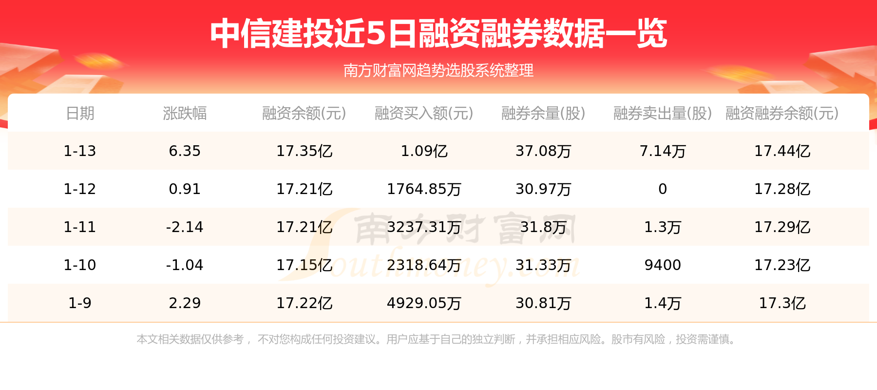 中信建投1月13日融券信息显示,融资方面,当日融资买入1.09亿元,融资偿还9542.97万元,融资净买额1376.75万元。融券方面,融券卖出7.14万股,融券偿还1.03万股,融券余量37.08万股,融券余额962.35万元。融资融券余额17.44亿元。近5日融资融券数据一览见下表: