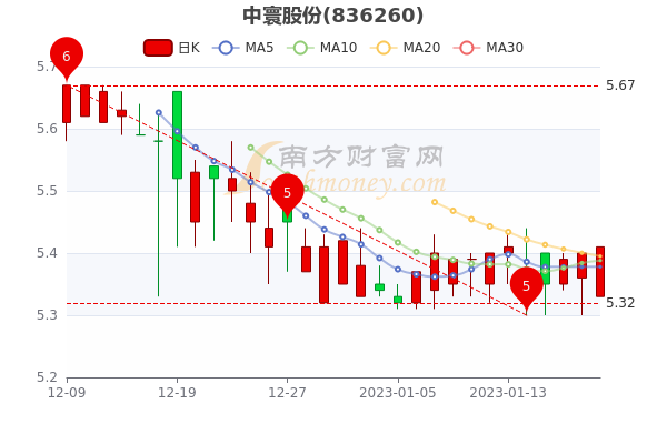 1月20日消息,中寰股份今年来涨幅上涨0.55%,截至15时收盘,该股报5.410元,涨0.19%,换手率0.21%。