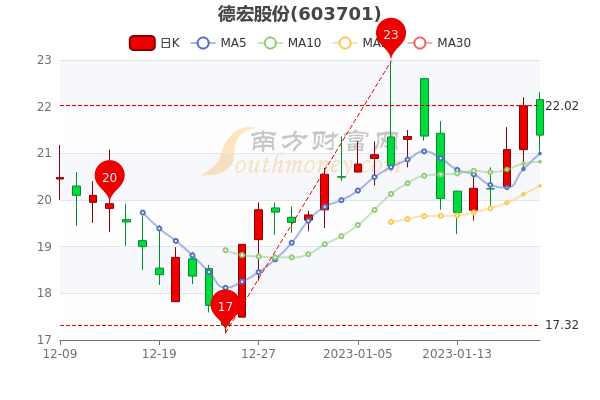 1月20日盘中消息,德宏股份最新报价21.390元,3日内股价上涨1.45%,市盈率为142.6。