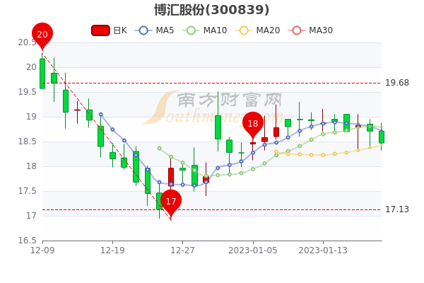 1月20日消息,博汇股份5日内股价下跌2.33%,最新报18.470元,成交量189.79万手,总市值为32.46亿元。