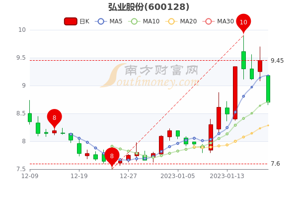 1月20日弘业股份早盘消息,7日内股价上涨1.03%,今年来涨幅上涨7.01%,最新报8.700元,跌7.94%,市值为21.47亿元。