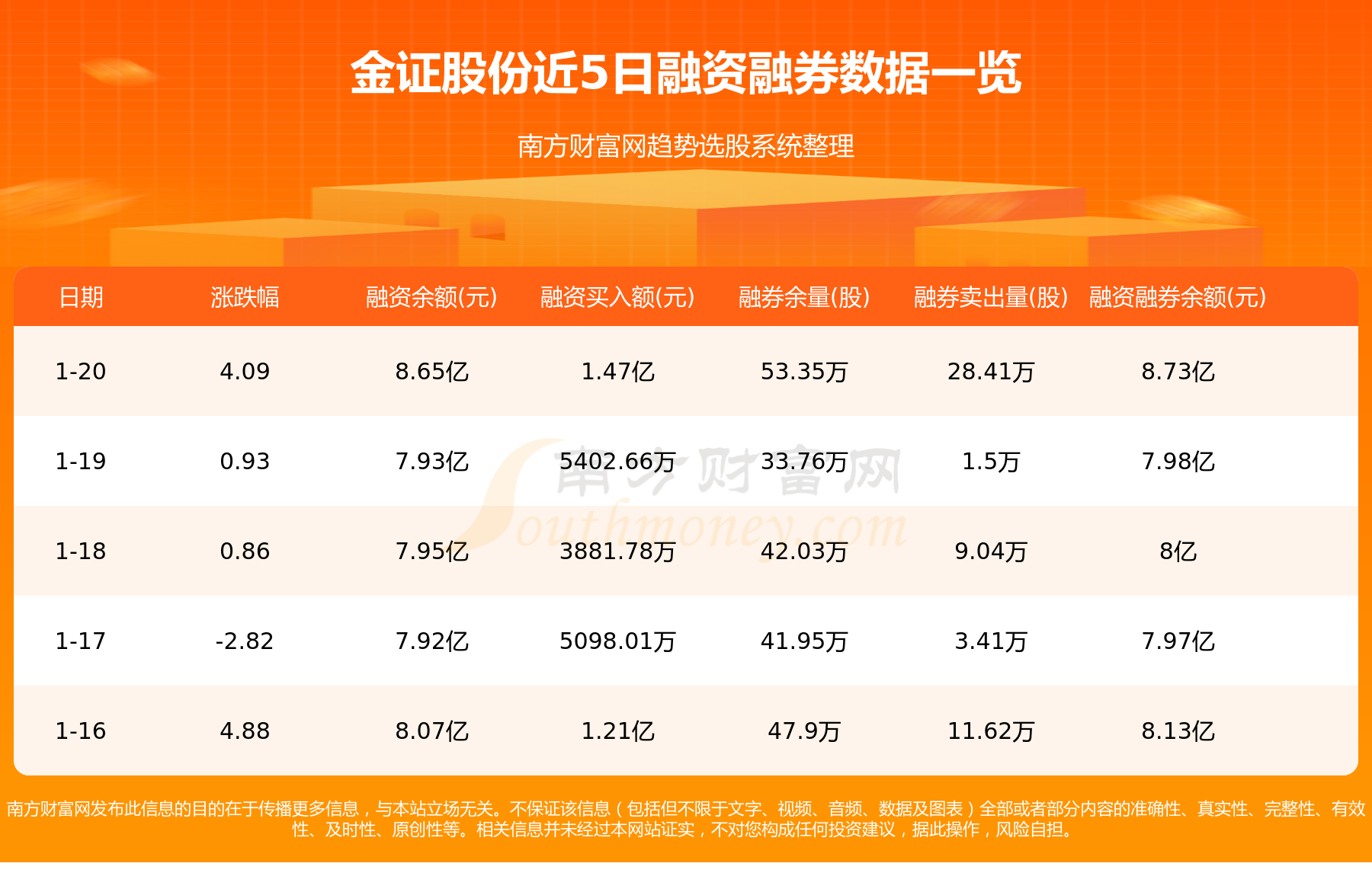 金证股份1月20日融券信息显示,融资方面,当日融资买入1.47亿元,融资偿还7475.17万元,融资净买额7214.98万元。融券方面,融券卖出28.41万股,融券偿还8.82万股,融券余量53.35万股,融券余额720.23万元。融资融券余额8.73亿元。近5日融资融券数据一览见下表: