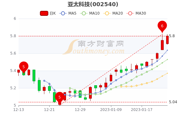 1月31日讯息,亚太科技3日内股价上涨3.45%,市值为72.51亿元,涨1.04%,最新报5.800元。