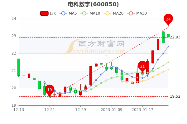 1月31日盘后消息,电科数字今年来涨幅上涨7.33%,最新报22.930元,成交额2.39亿元。